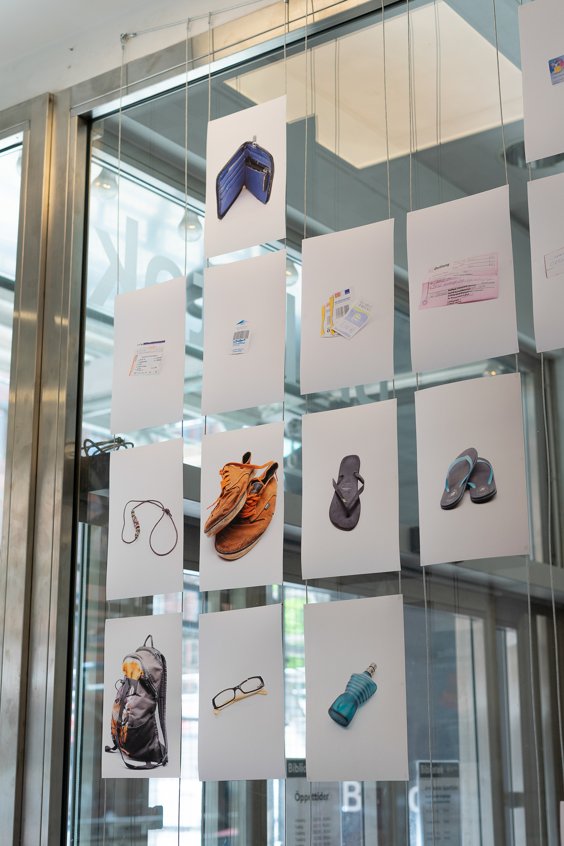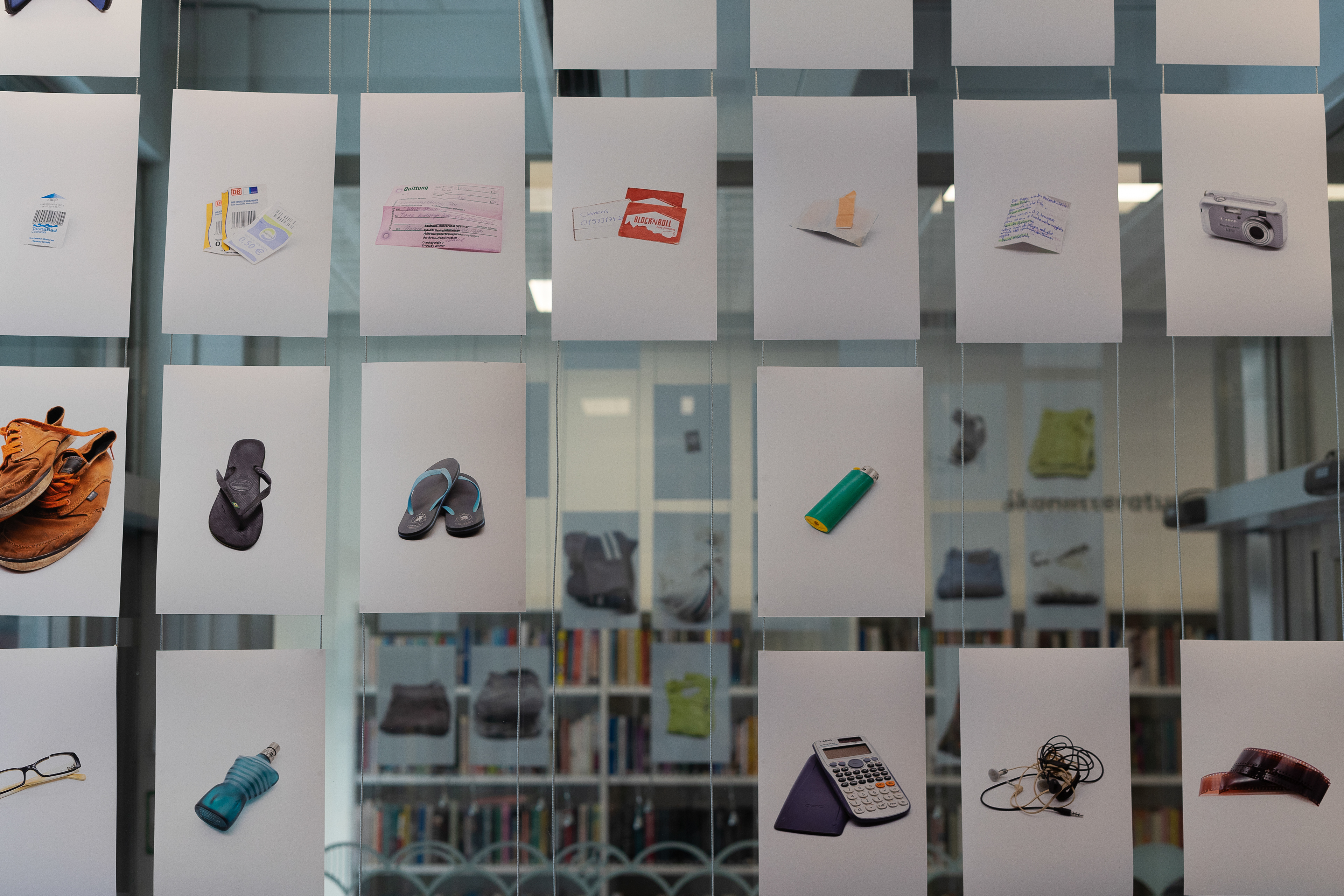 In seiner Arbeit RK511 SE Steinmetz beschäftigt sich Johan Steinmetz mit dem Nachlassverzeichnis seines Bruders, welches 2014 nach dessen Unfalltod während eines Auslandssemesters von den Behörden angefertigt wurde. Die aufindbaren Gegenstände dokumentiert er fotografisch, die Teile des Gepäcks, die nicht mehr aufindbar waren, sind mit einer Leerstelle markiert. Im Kontrast zu den Abläufen der Behörden steht hier die persönliche Auseinandersetzung mit Trauer und Verlust und die Frage, ob und wie Dinge eine Identität oder Persön-lichkeit Konstiturieren können. Als Tonspur liest Johan Steinmetz selbst die Liste der hinterbliebenden Dinge seines verstorbenen Bruders. (Text aus Begleitheft zur Arbeit die im Rahmen der Ausstellung Herkunft ausgestellt wurde)